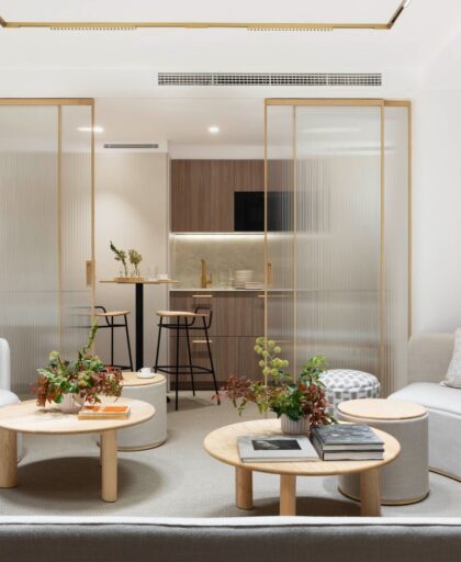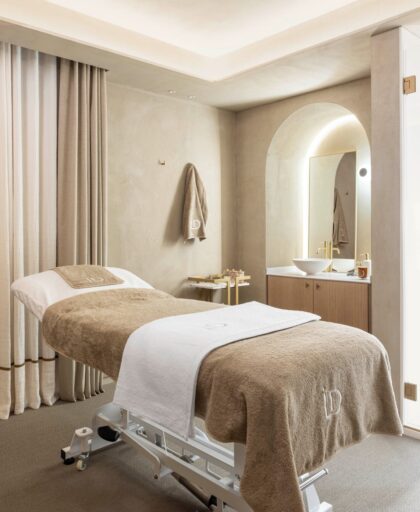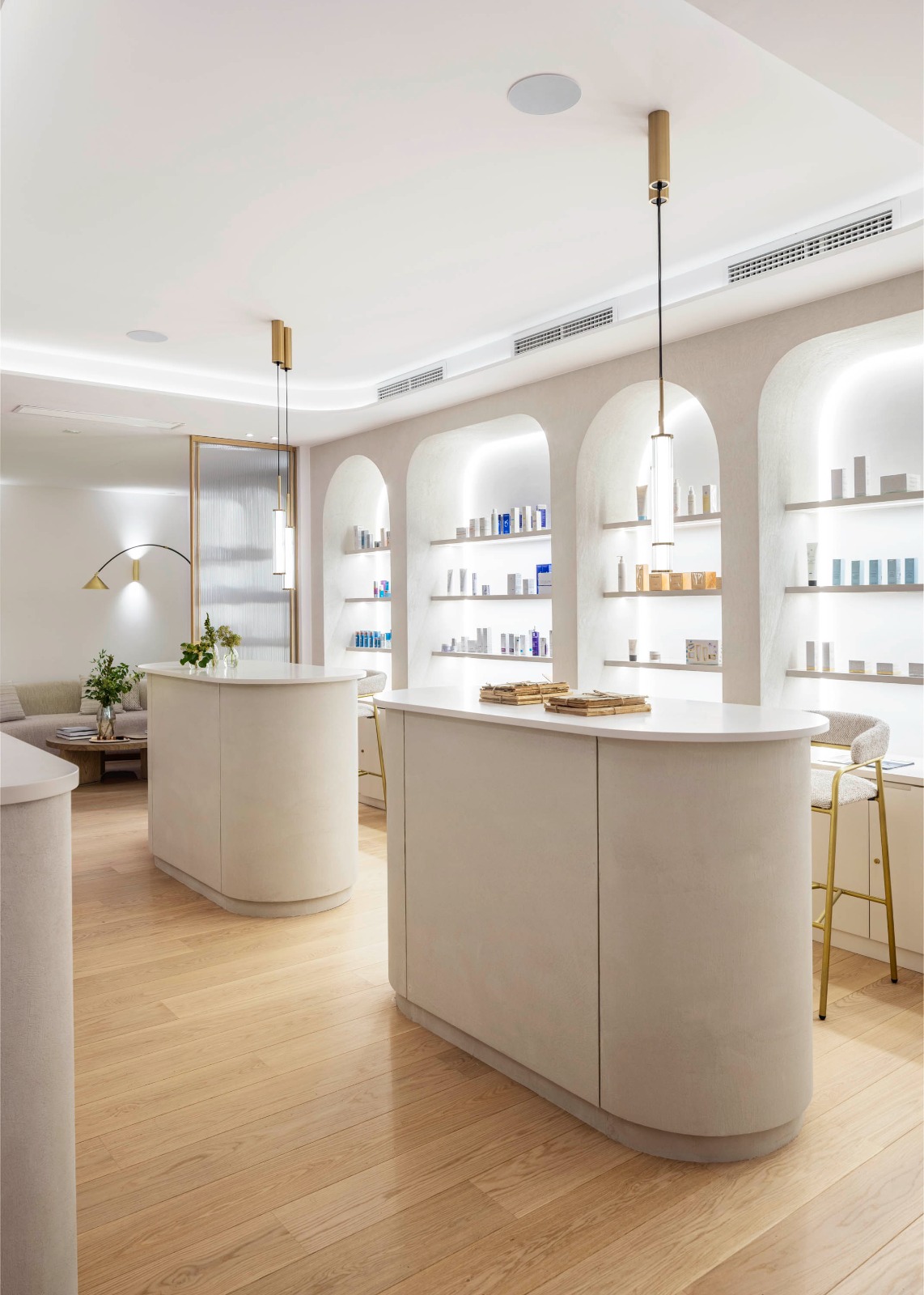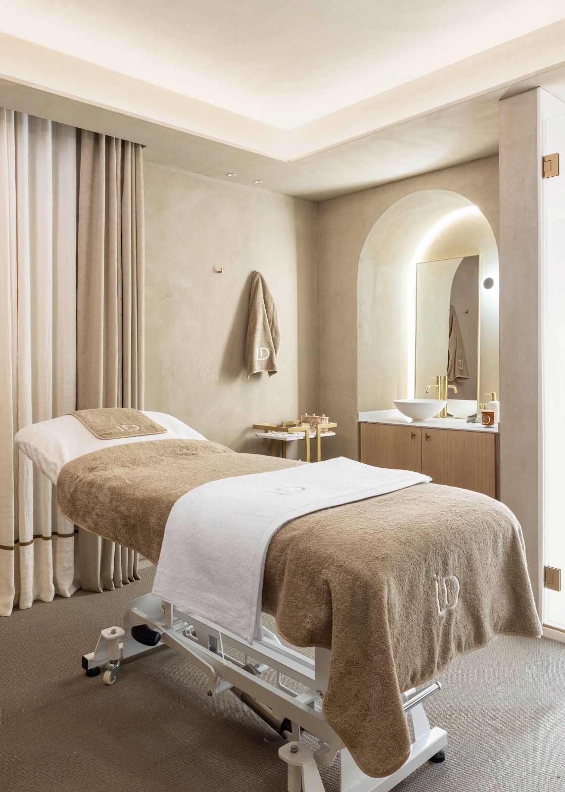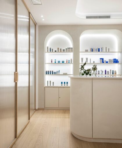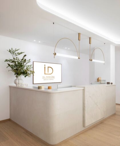 El interiorismo se convierte en una extensión tangible de la identidad de la clínica. Los tonos arena y cremas, los acabados cuidados y los detalles dorados reinterpretan el universo estético de IDA Medicina Estética desde una mirada arquitectónica, generando una atmósfera coherente con su filosofía: profesional, cercana y profundamente humana.