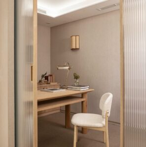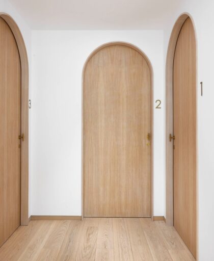 La distribución se ha diseñado pensando en optimizar la funcionalidad médica y, al mismo tiempo, elevar la experiencia del paciente. Cada zona —desde la recepción hasta los gabinetes o el despacho médico— se ha concebido como una secuencia fluida, cálida y envolvente, donde el confort sensorial se convierte en parte del tratamiento.