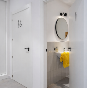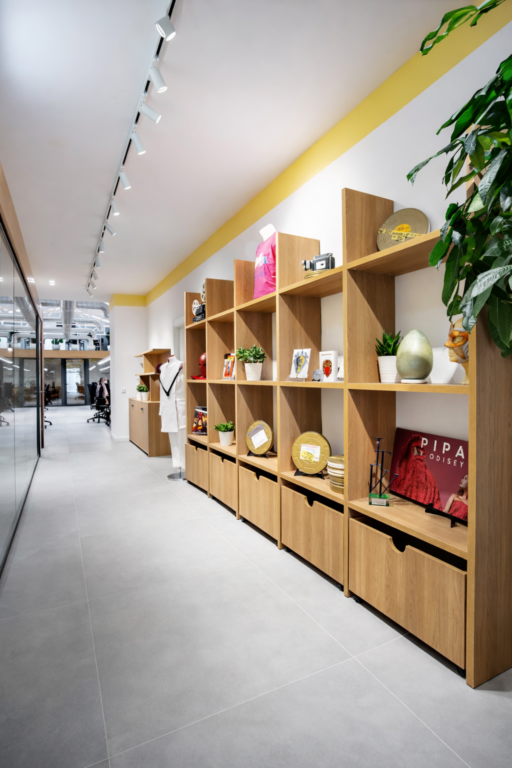 El proyecto combina pavimento de acabado cementoso, estructuras vistas y conductos técnicos con madera natural y mobiliario diseñado a medida. Este equilibrio entre lenguaje industrial y materiales cálidos genera un ambiente profesional, acogedor y contemporáneo.
